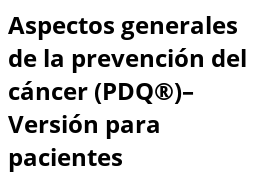 Información general sobre la prevención del cáncer y descripciones de conceptos usados en sumarios específicos sobre la prevención del cáncer.