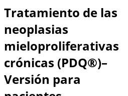 Resumen de información revisada por expertos acerca del tratamiento de las neoplasias mieloproliferativas crónicas.